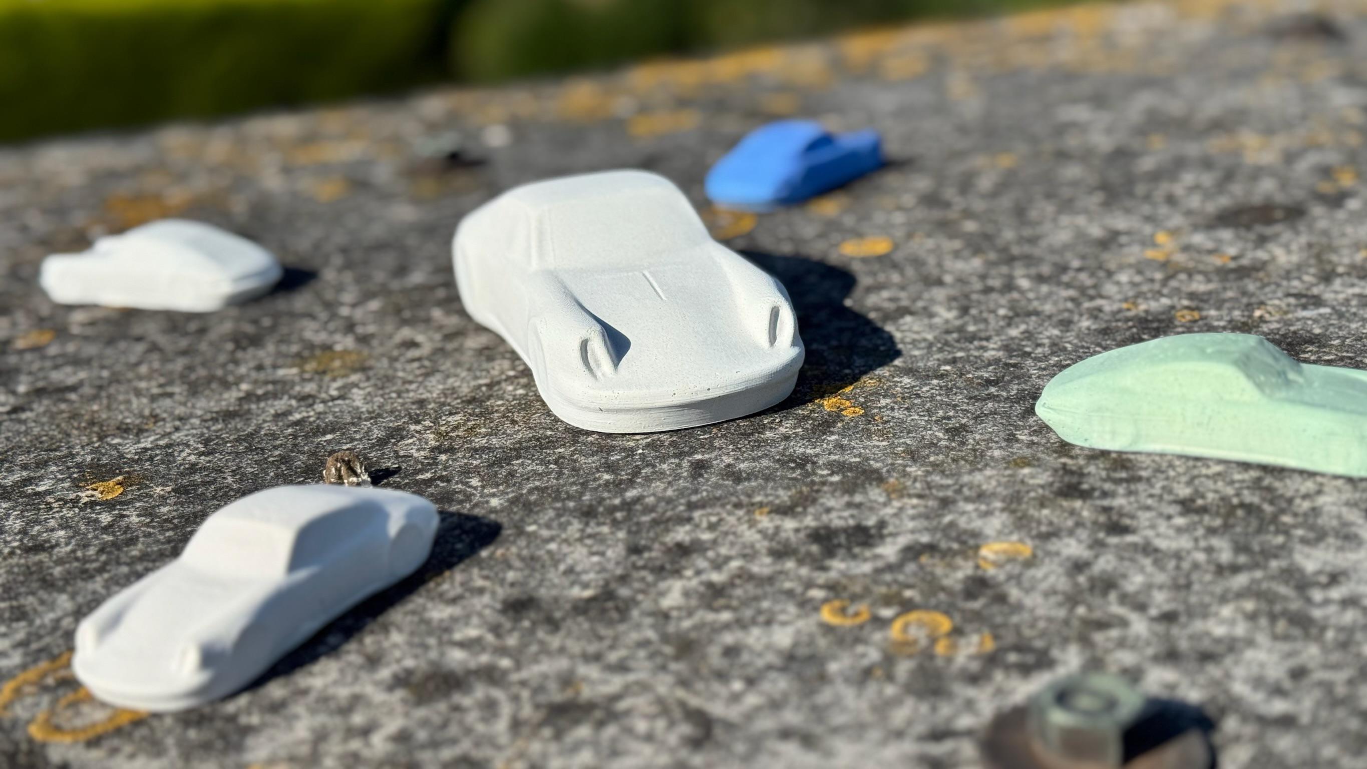 Handgemachte Gips und Beton Skulpturen in Form des legendären Porsche 911
